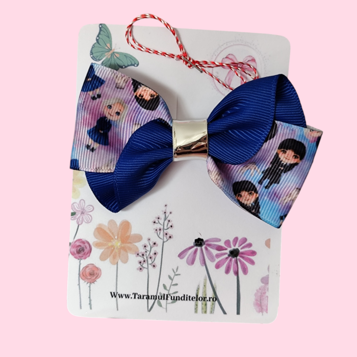 🎀 Fundiță albastră cu tematică Wednesday – clips aligator