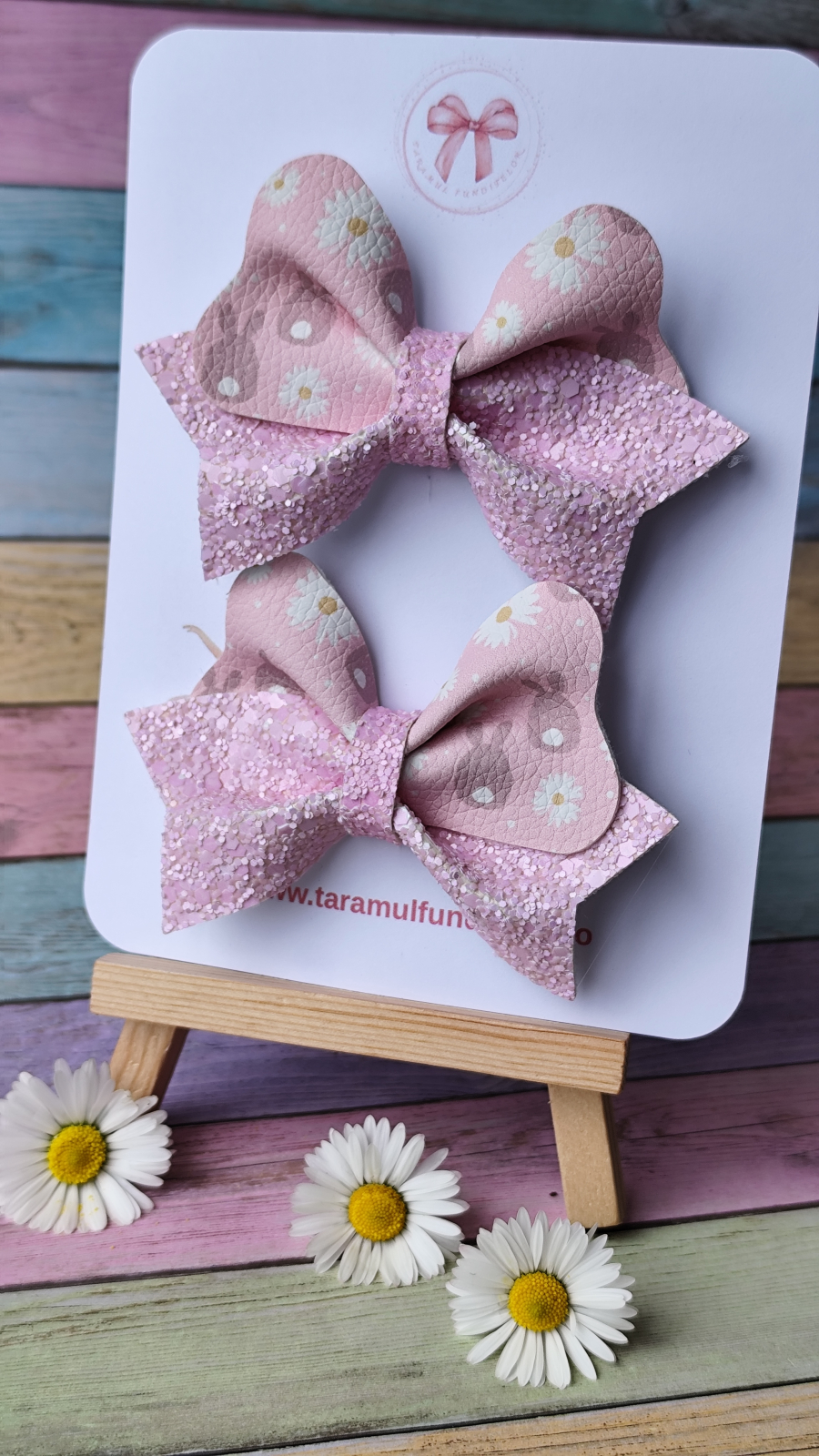 Set delicat de 2 fundițe roz , realizate din piele ecologica de calitate si glitter textil, cu imprimeu vesel cu iepurasi si flori – ideale pentru sezonul de primăvară și vara. Fiecare fundiță este atent lucrată și atașată pe clips tip aligator, fiind ușor de prins și confortabil de purtat.