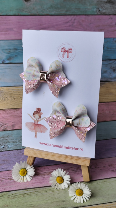 Set delicat de 2 fundițe , realizate din piele ecologica de calitate si glitter textil, cu imprimeu vesel cu unicorni – ideale pentru sezonul de primăvară și vara. Fiecare fundiță este atent lucrată și atașată pe clips tip aligator, fiind ușor de prins și confortabil de purtat.