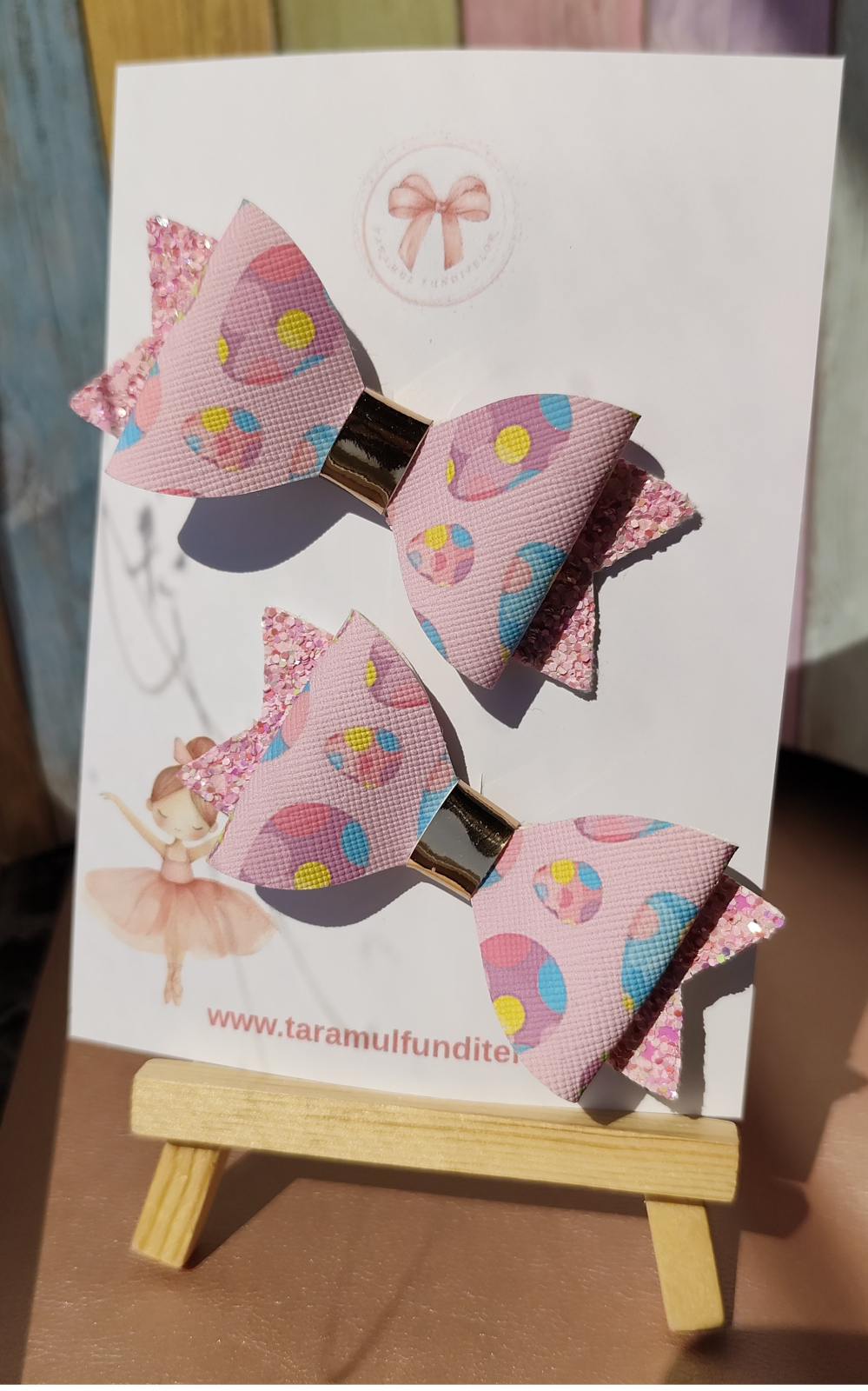 Set delicat de 2 fundițe, realizate din piele textilă de calitate, cu imprimeu vesel cu ouă decorative – ideale pentru sezonul de primăvară și sărbătorile pascale. Fiecare fundiță este atent lucrată și atașată pe clips tip aligator, fiind ușor de prins și confortabil de purtat.